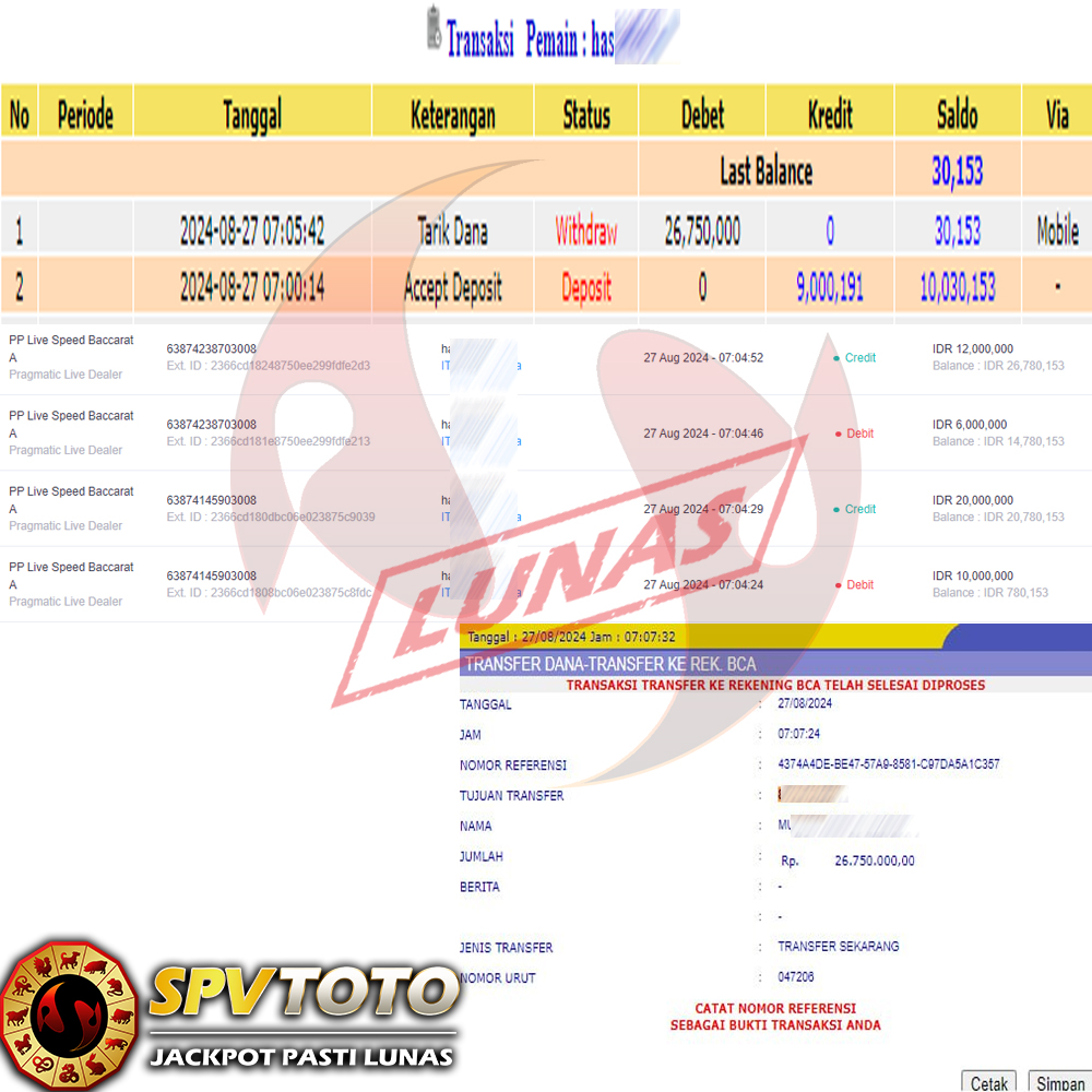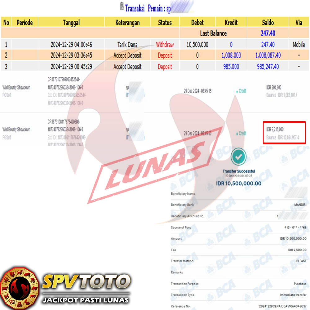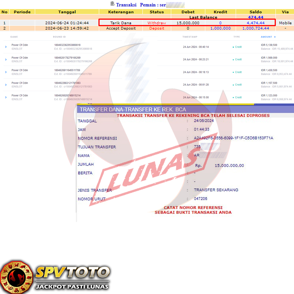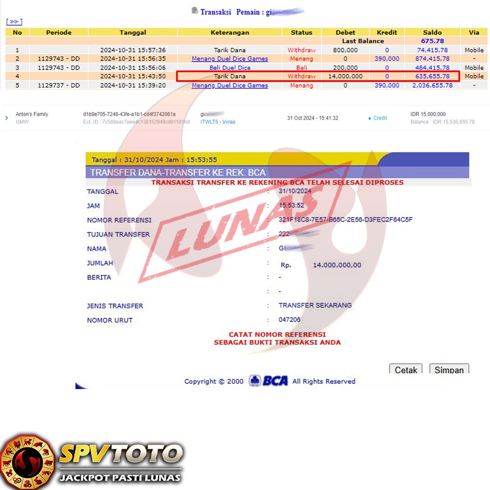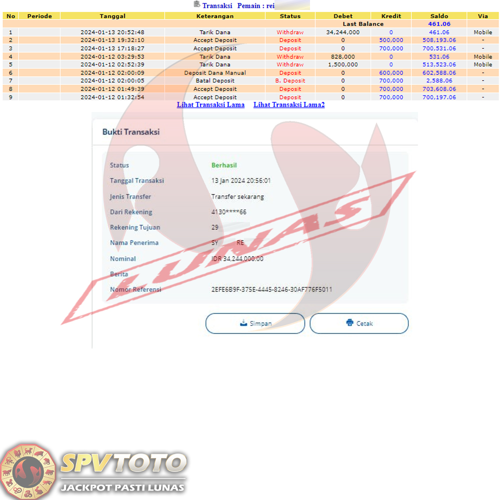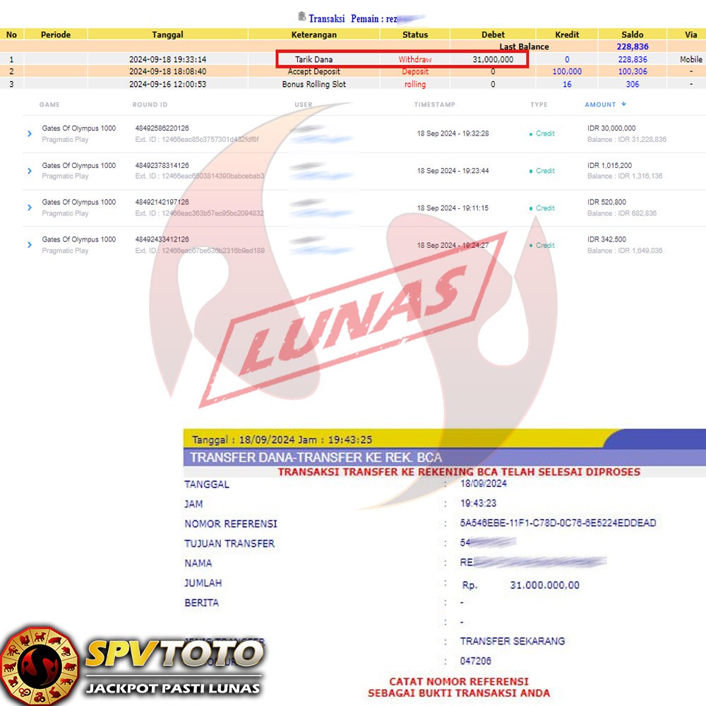 TRANSFER TELAH DI PROSES !! DAN MENDARAT MULUS KE REKENING ANDA YAH BOSSKU , WD BERAPAPUN DI SPVTOTO DI BAYAR LUNAS !! TANPA BASA BASI!!!