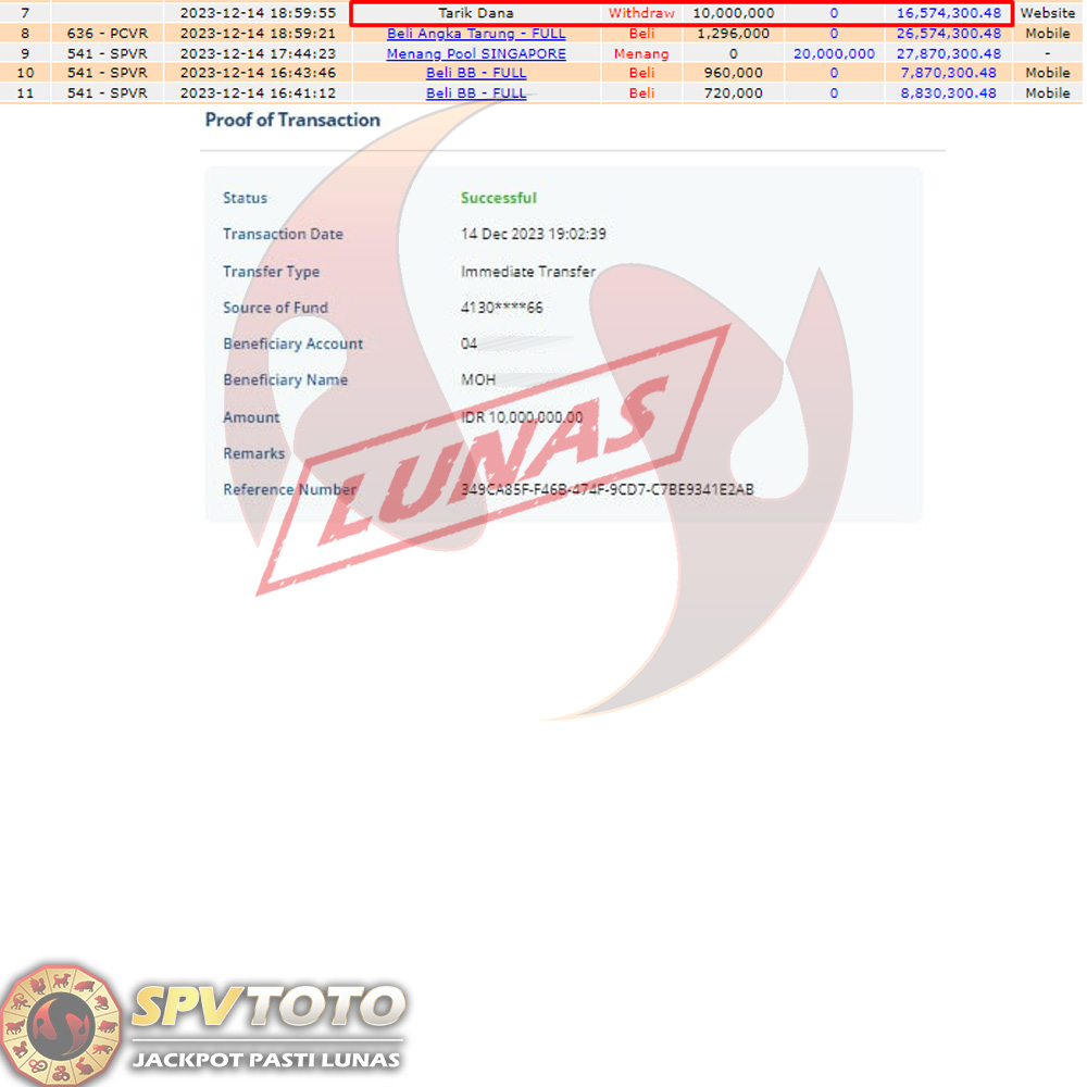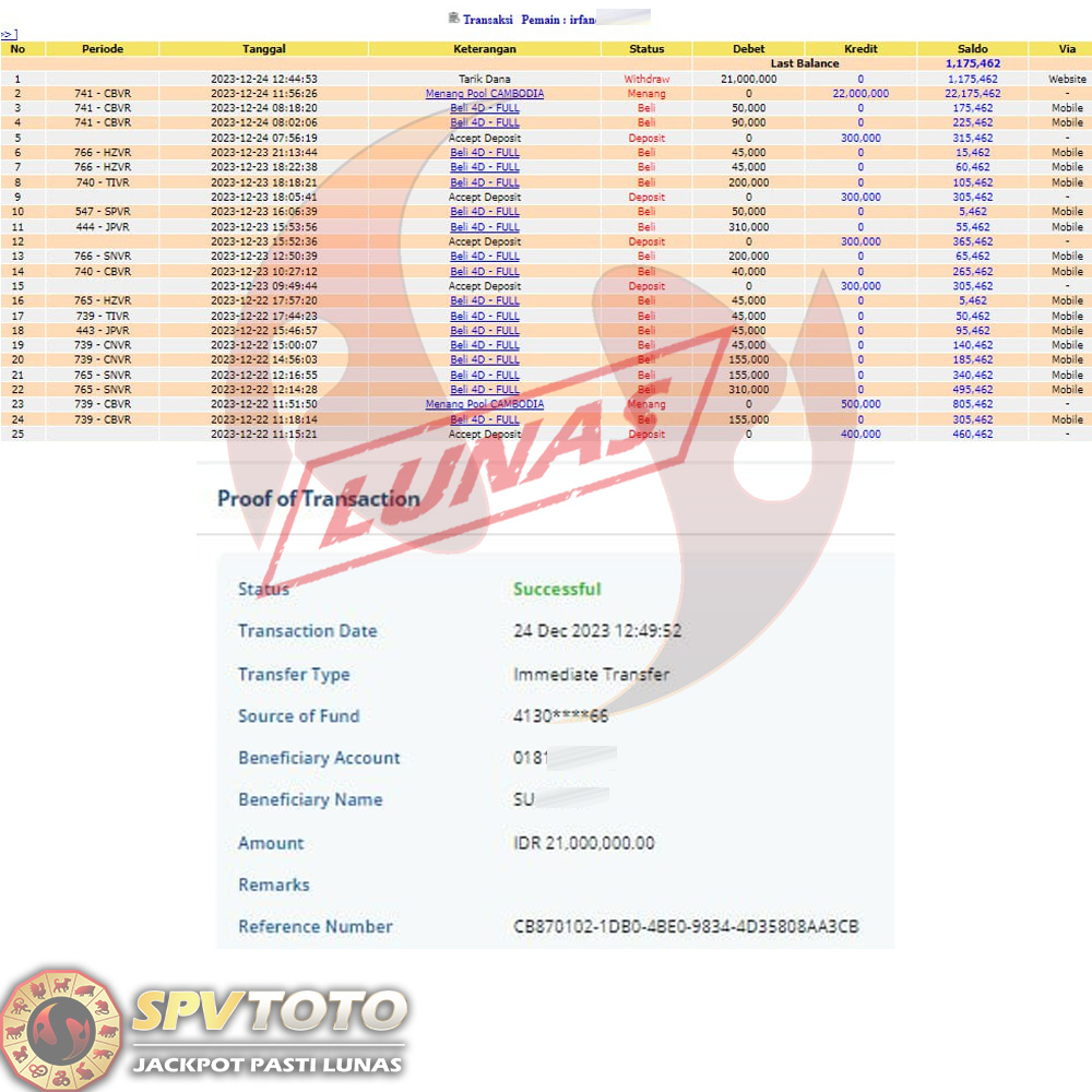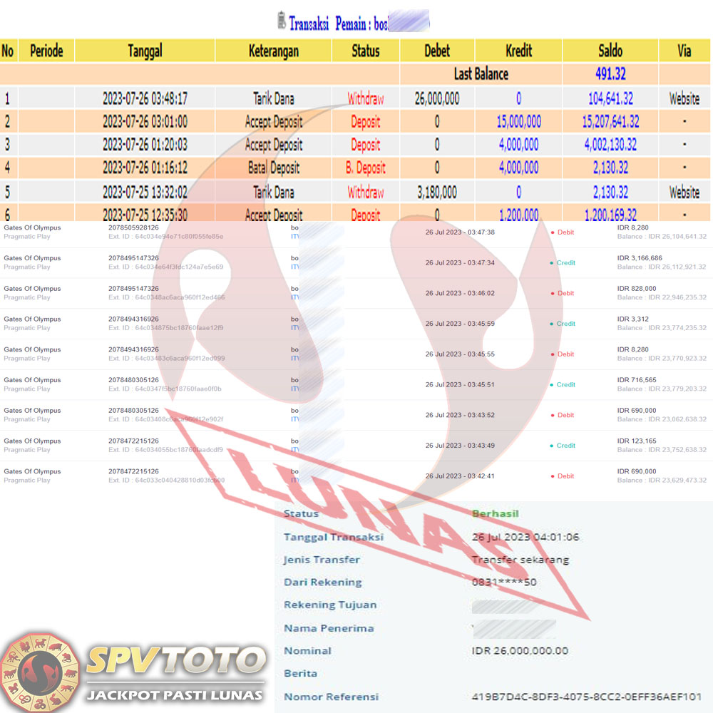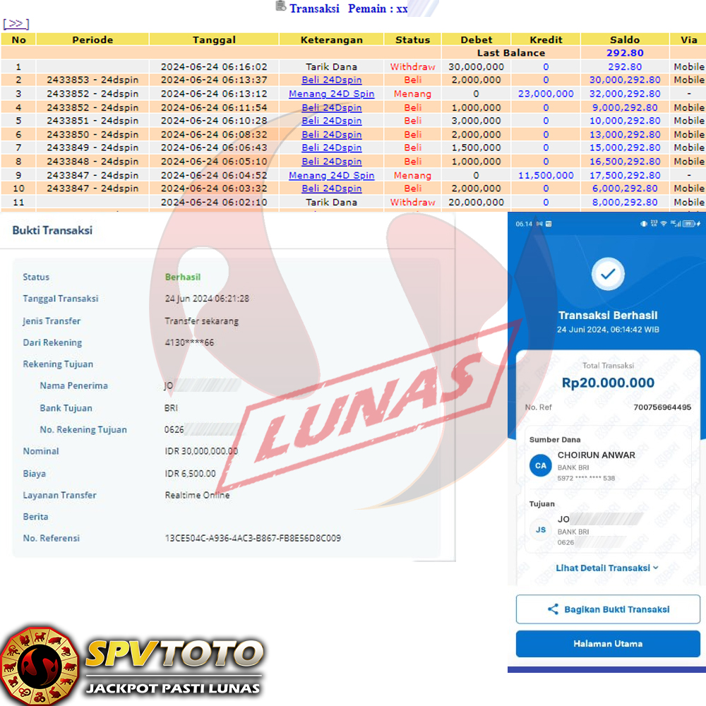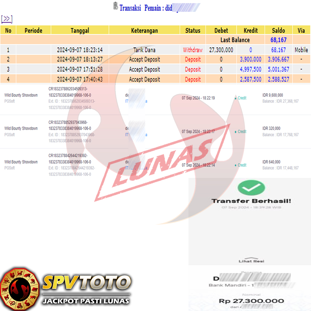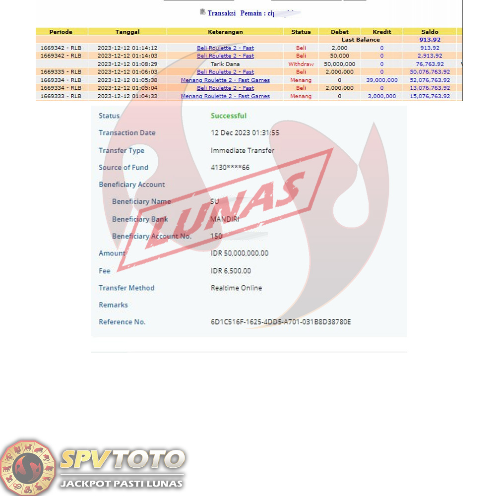 TRANSFER TELAH DI PROSES !! DAN MENDARAT MULUS KE REKENING ANDA YAH BOSSKU , WD BERAPAPUN DI SPVTOTO DI BAYAR LUNAS !! TANPA BASA BASI!!!
