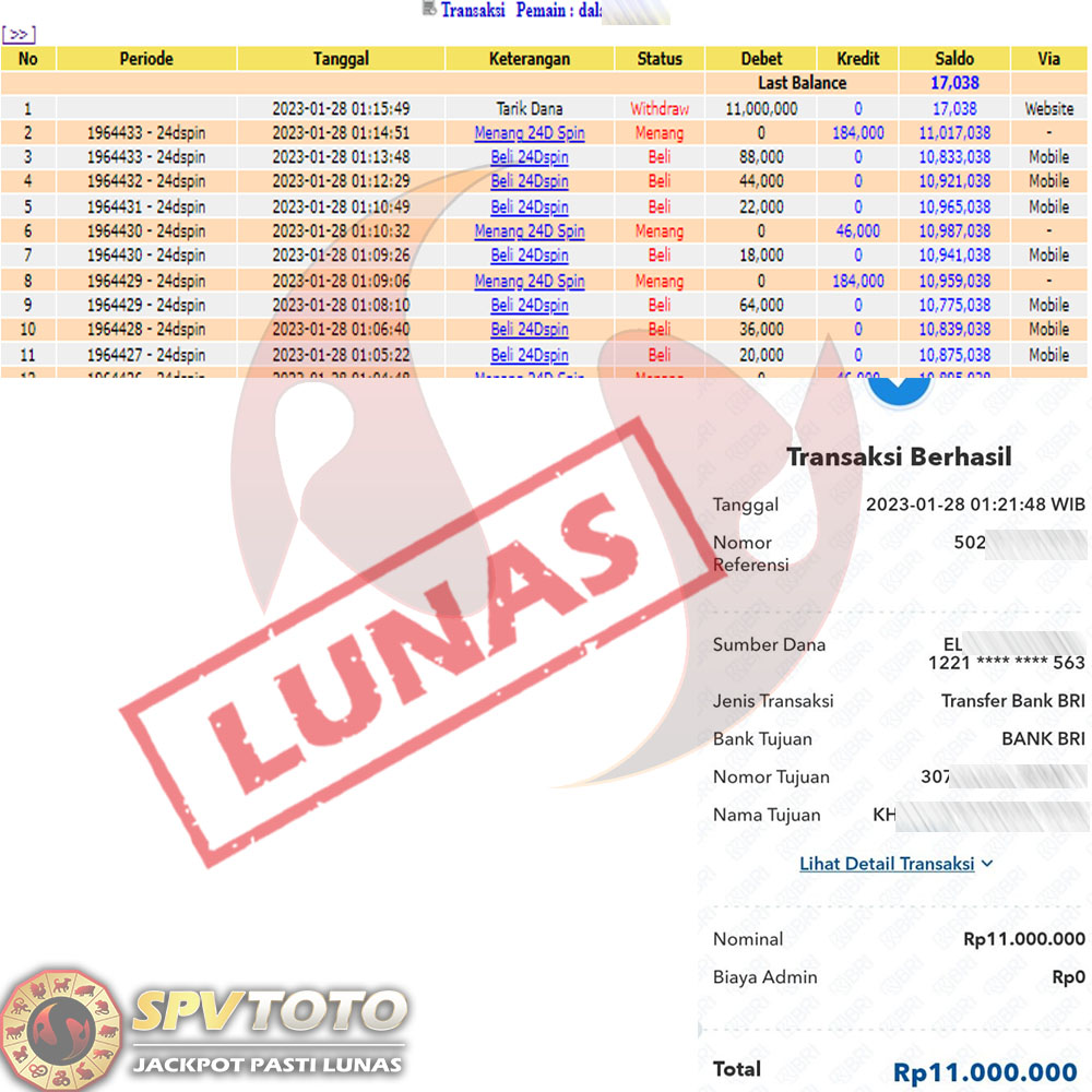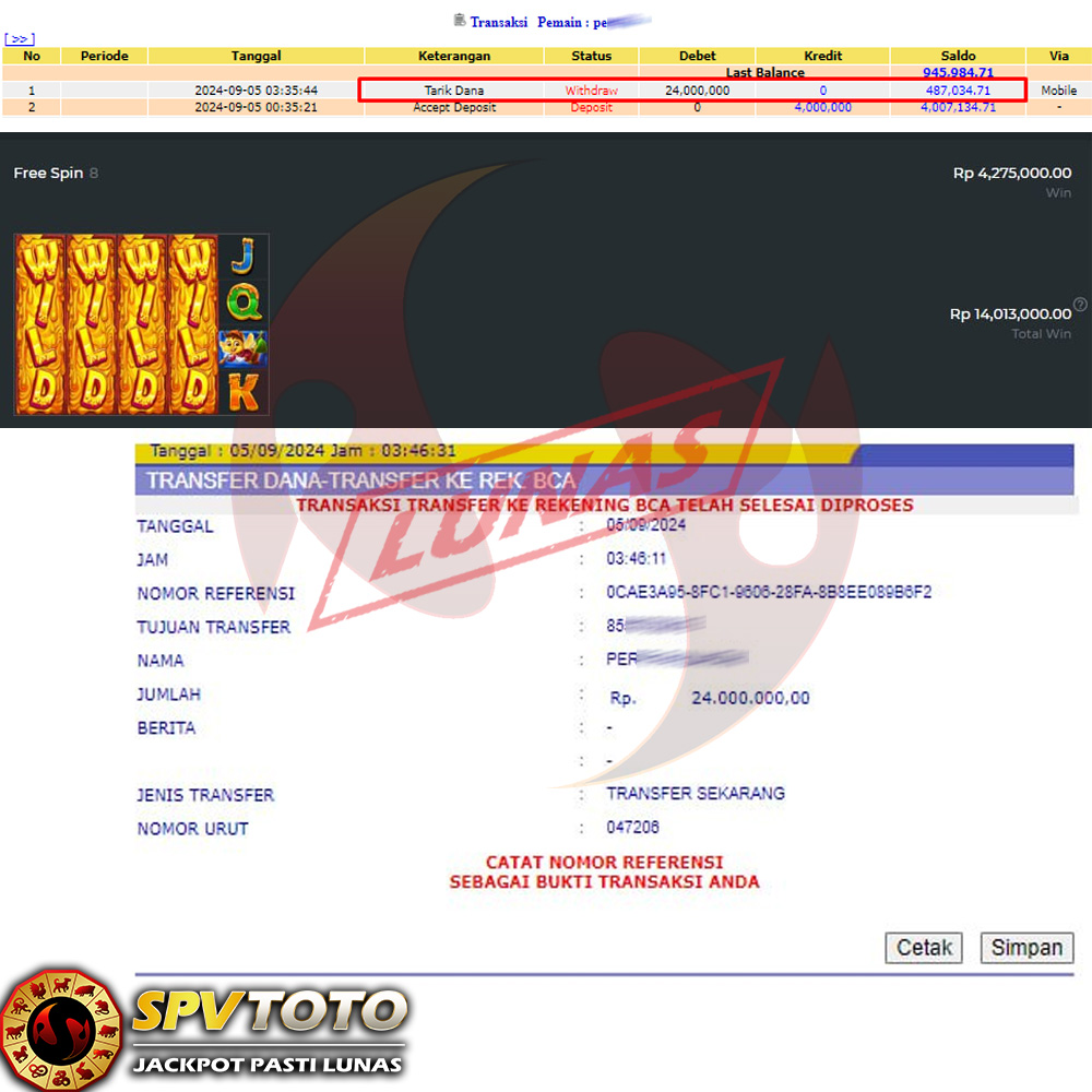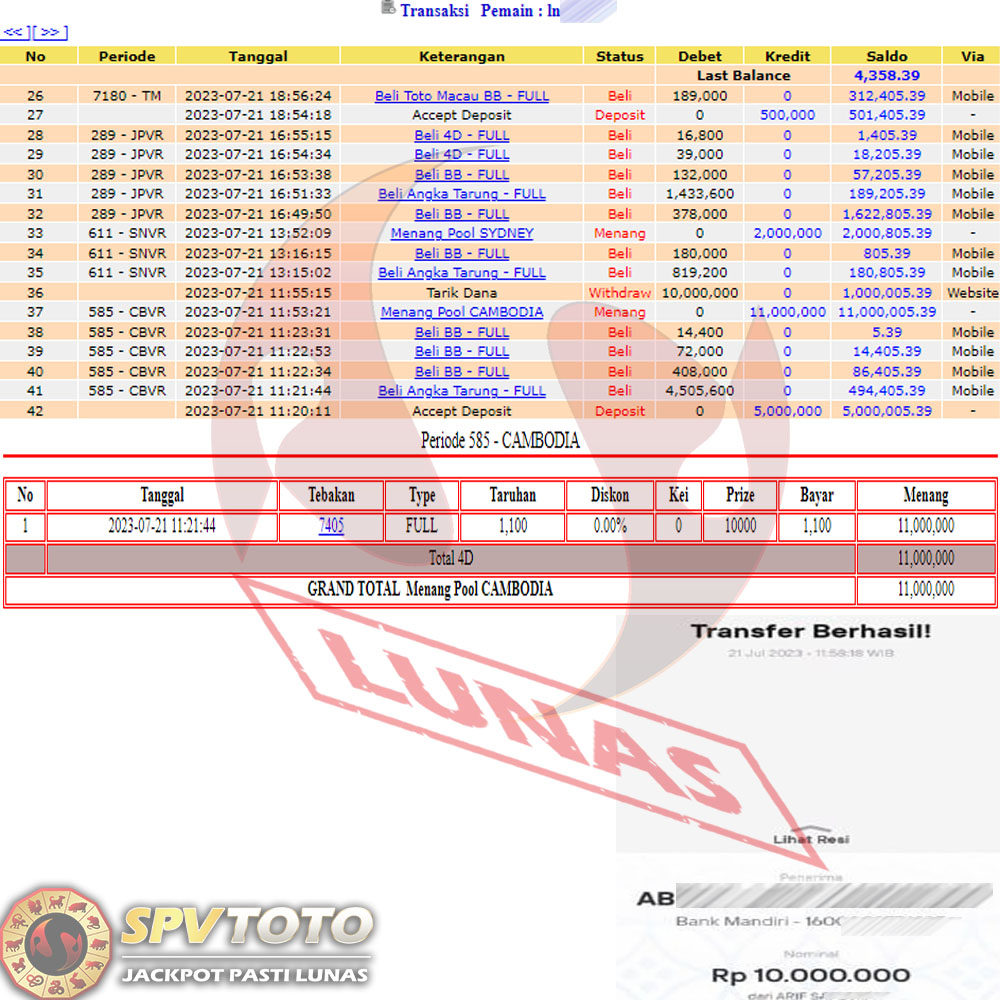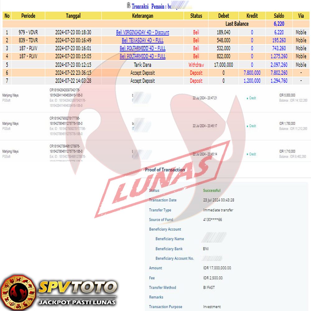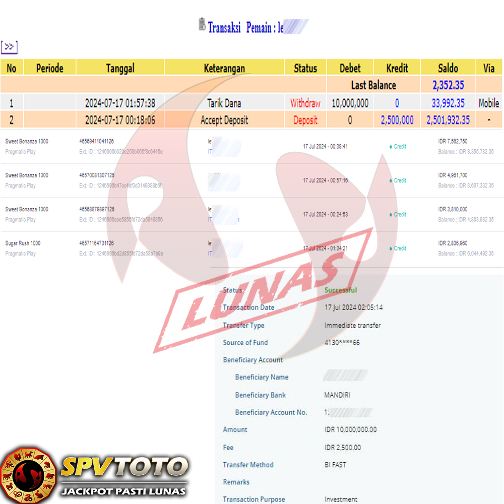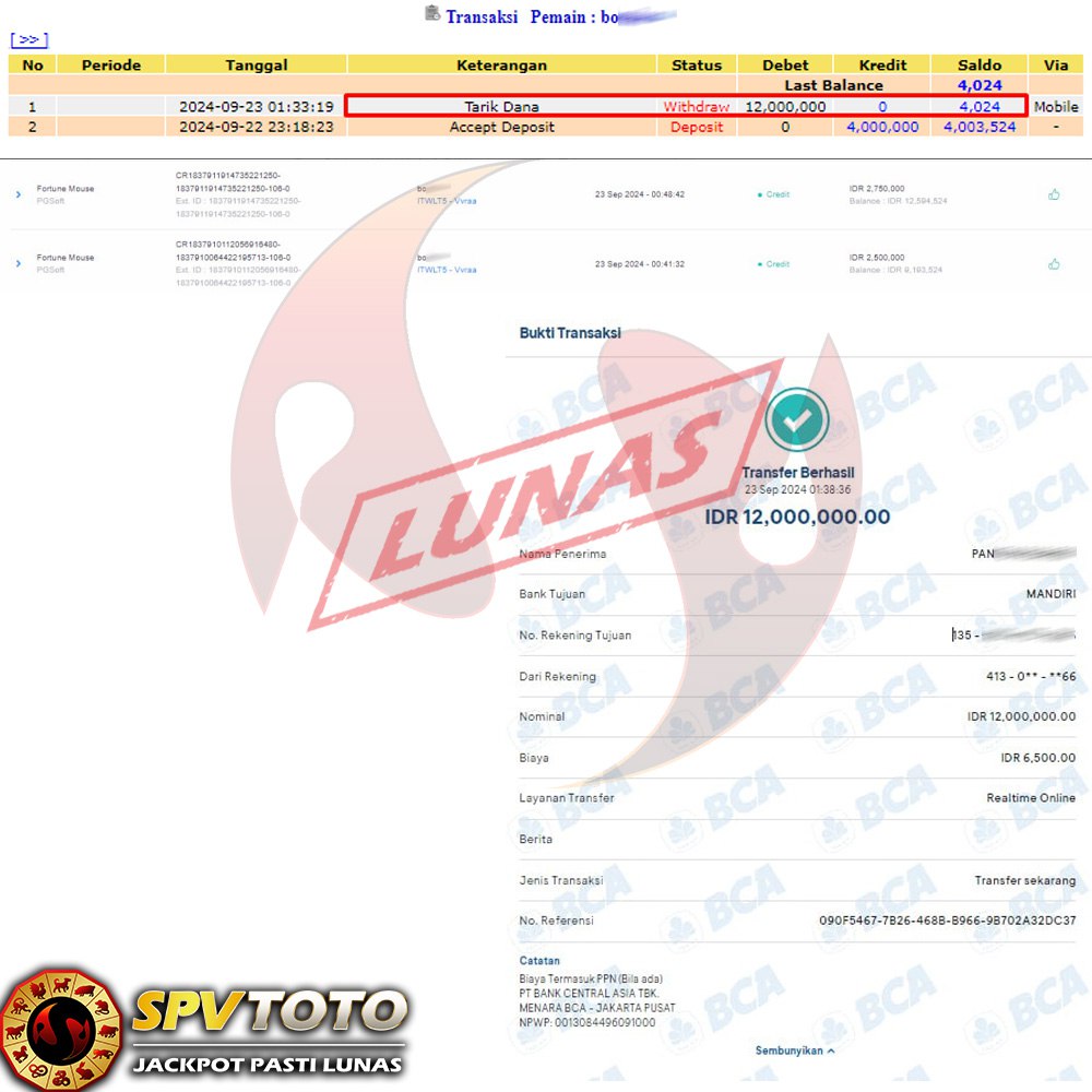 TRANSFER TELAH DI PROSES !! DAN MENDARAT MULUS KE REKENING ANDA YAH BOSSKU , WD BERAPAPUN DI SPVTOTO DI BAYAR LUNAS !! TANPA BASA BASI!!!