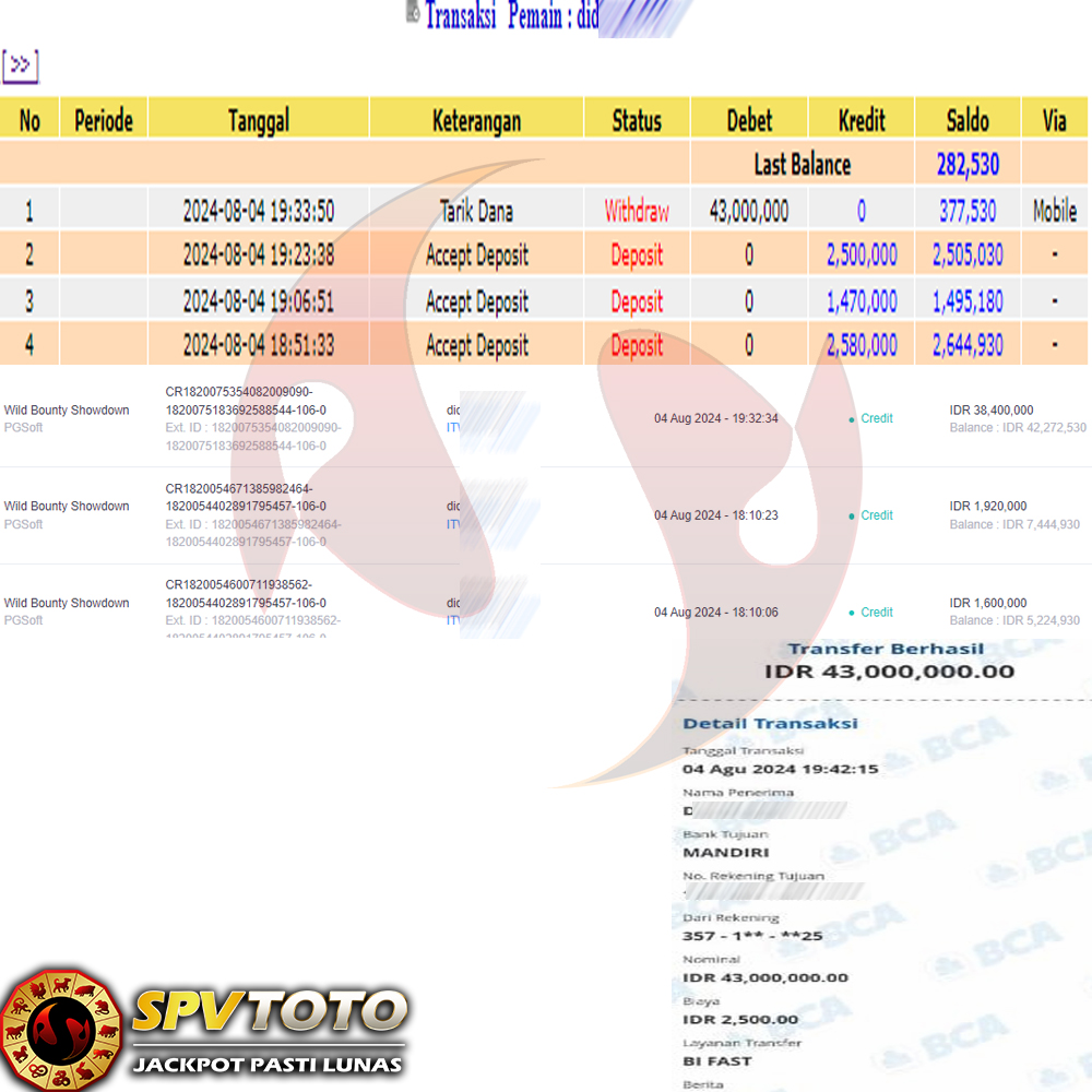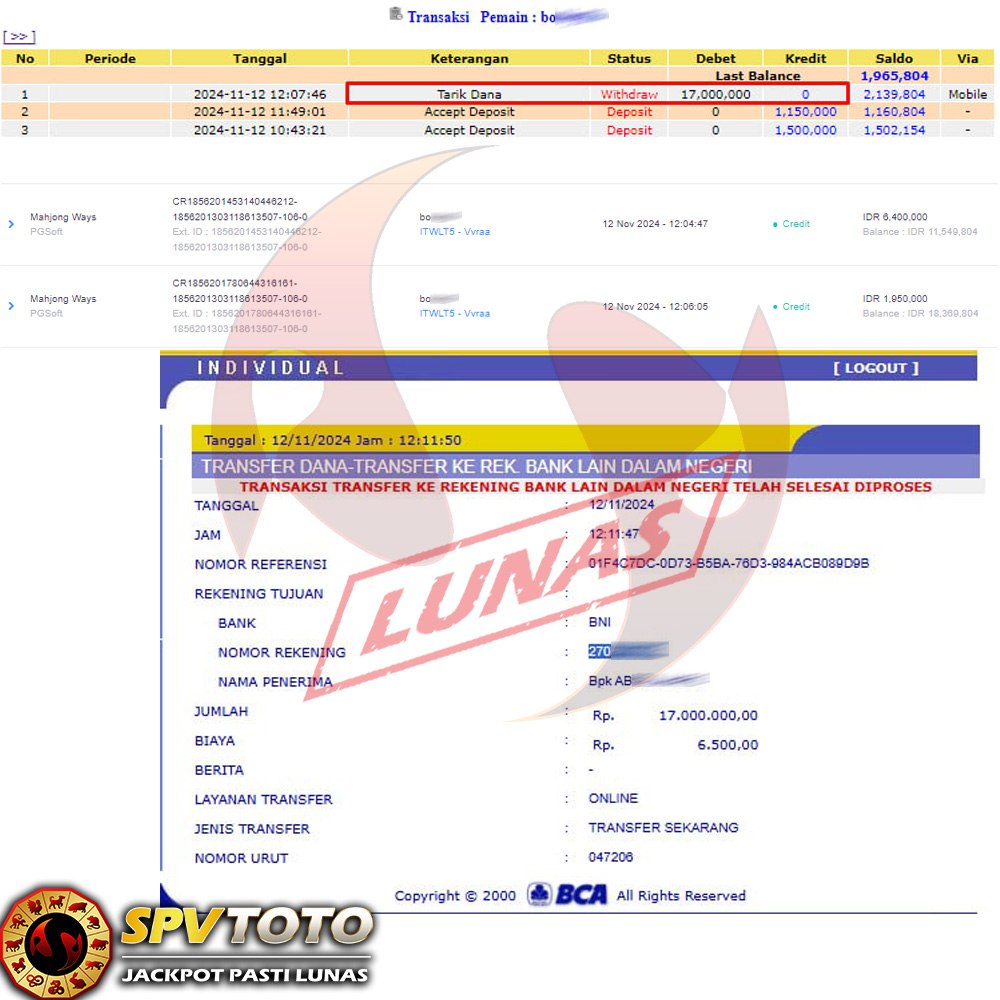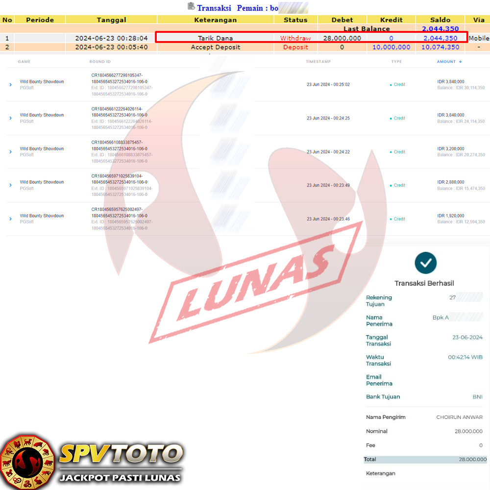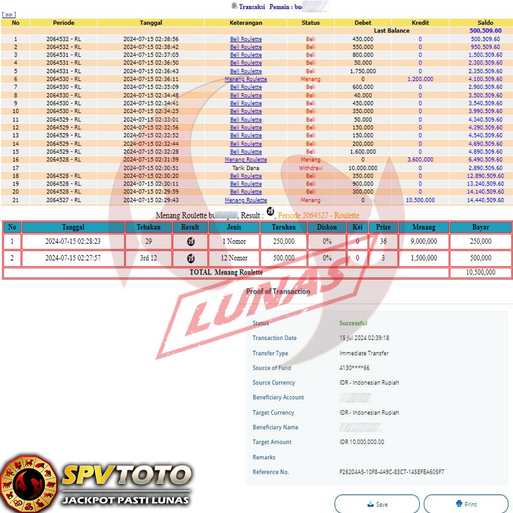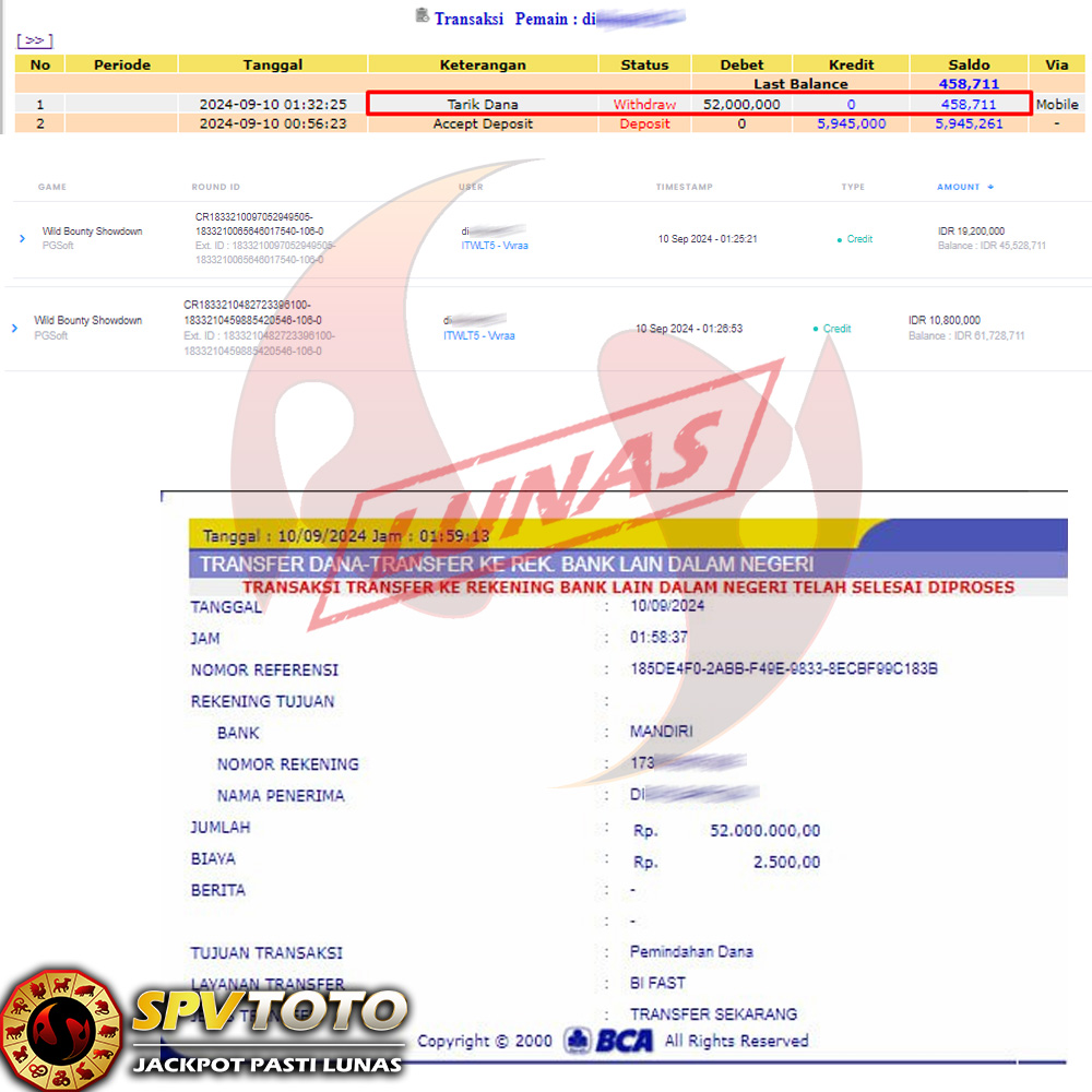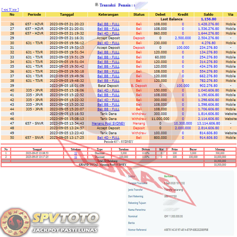 TRANSFER TELAH DI PROSES !! DAN MENDARAT MULUS KE REKENING ANDA YAH BOSSKU , WD BERAPAPUN DI SPVTOTO DI BAYAR LUNAS !! TANPA BASA BASI!!!