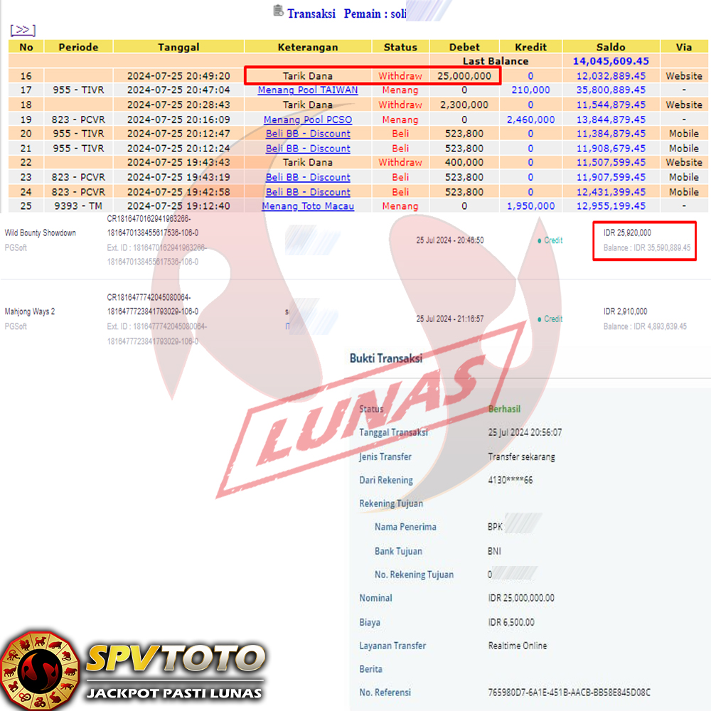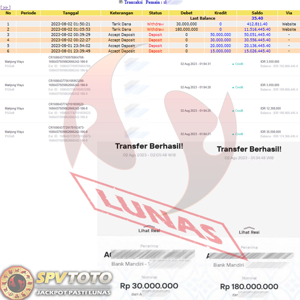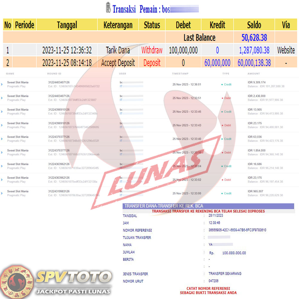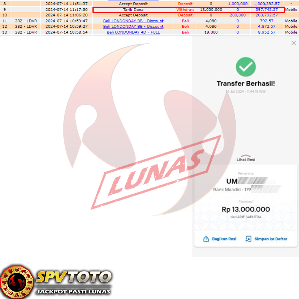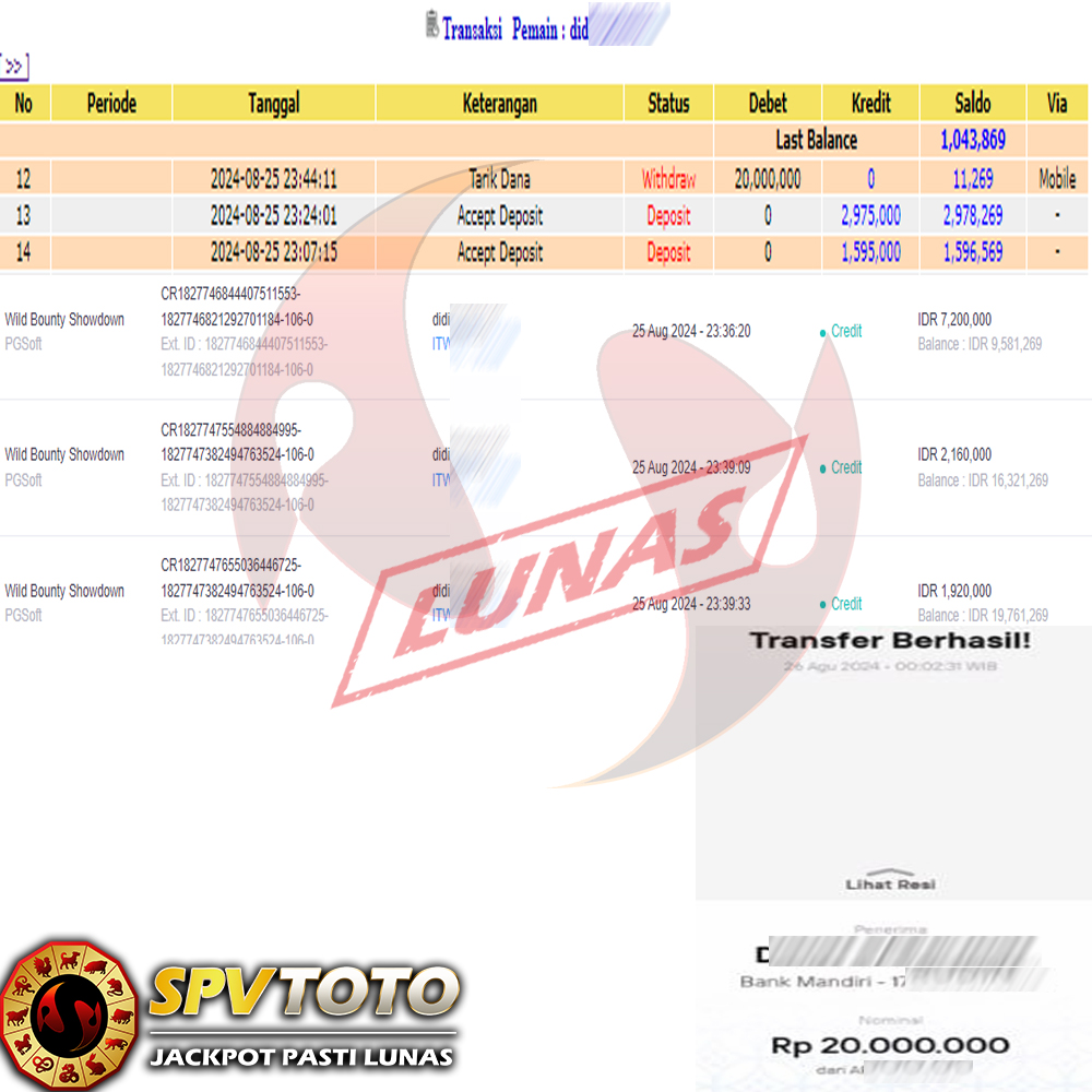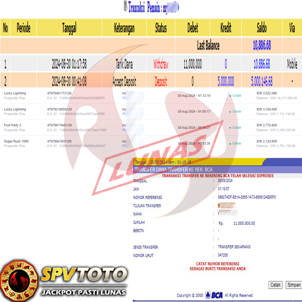TRANSFER TELAH DI PROSES !! DAN MENDARAT MULUS KE REKENING ANDA YAH BOSSKU , WD BERAPAPUN DI SPVTOTO DI BAYAR LUNAS !! TANPA BASA BASI!!!