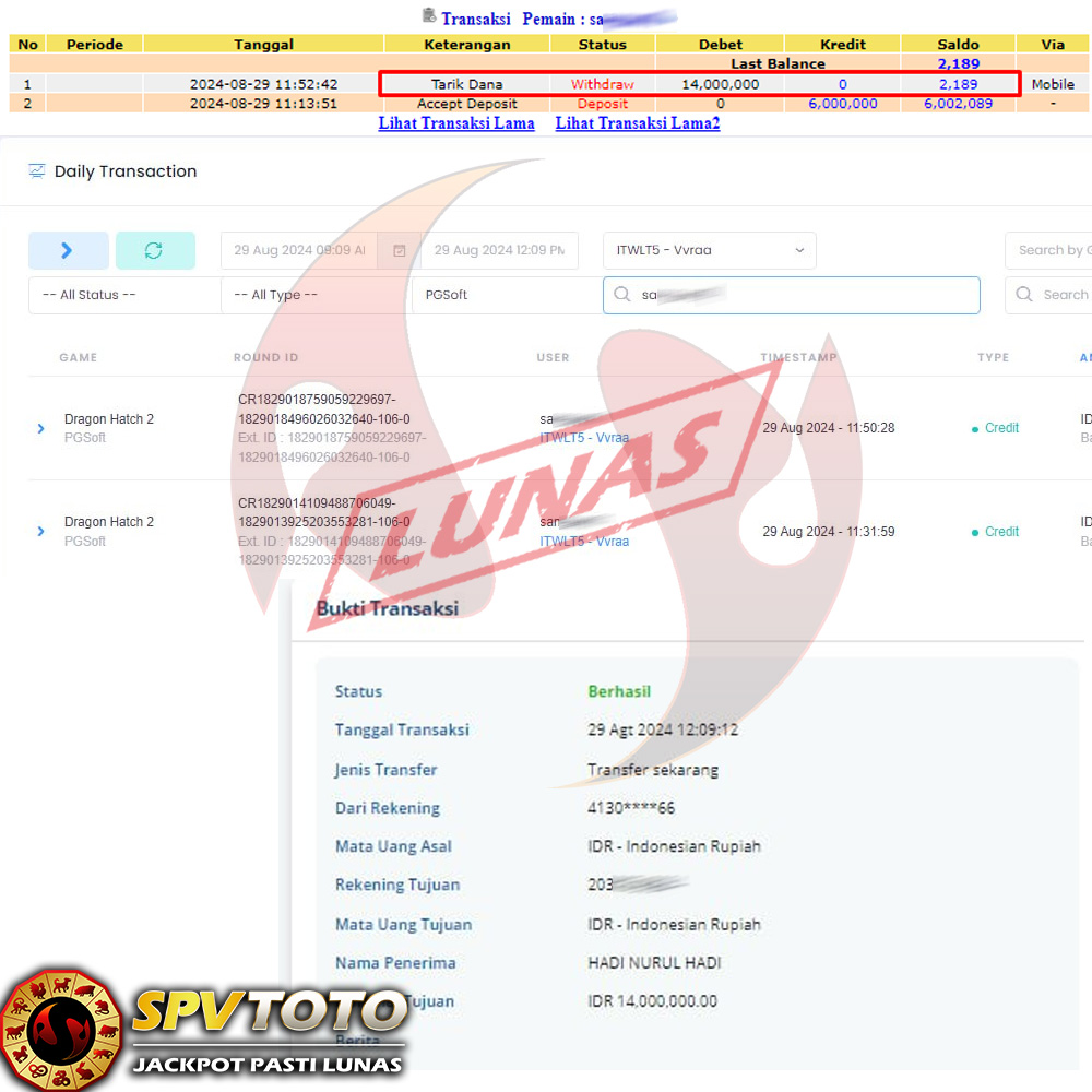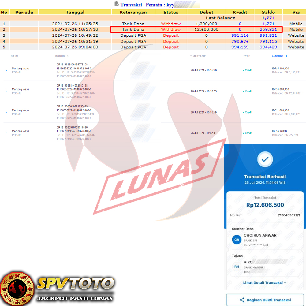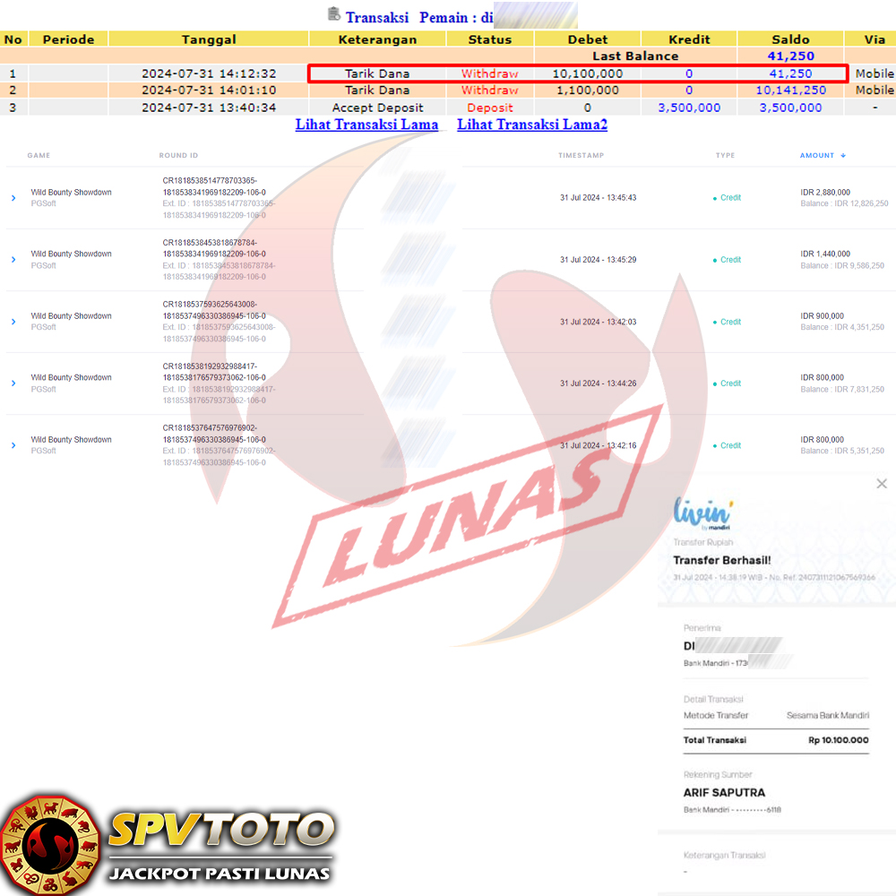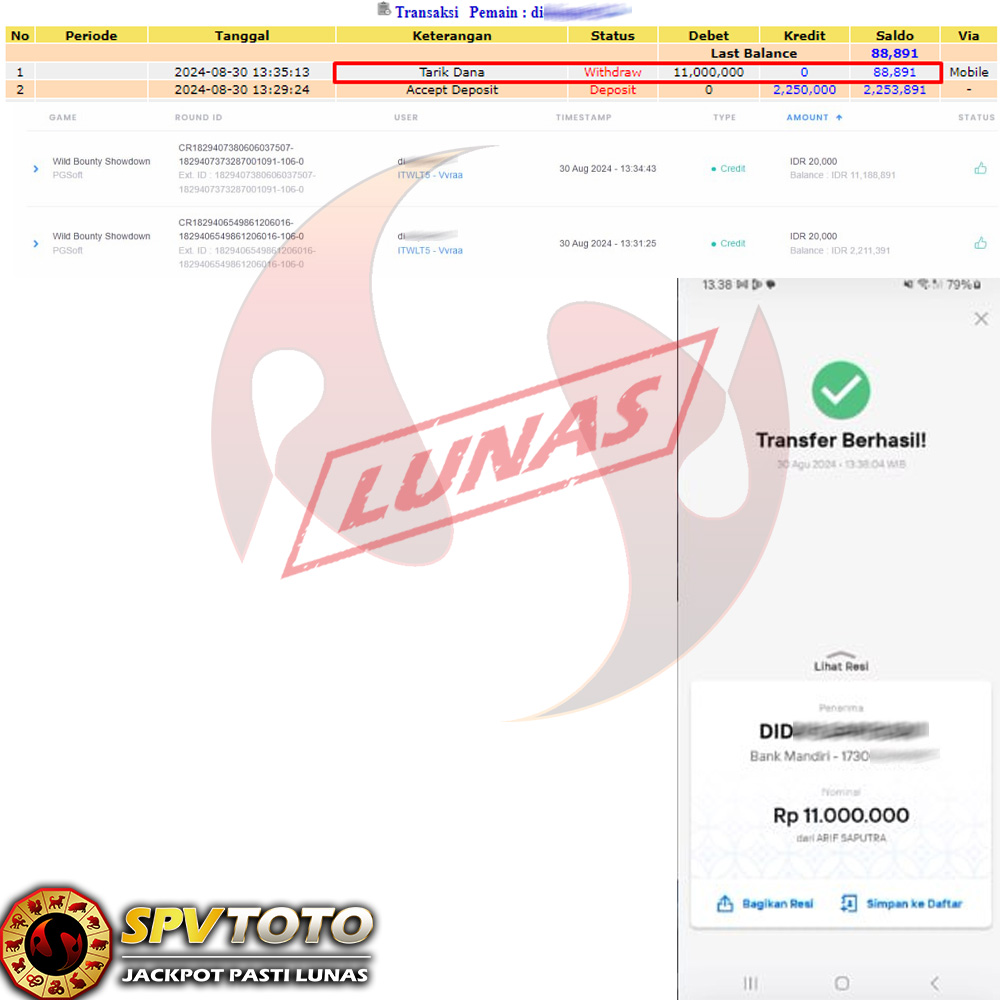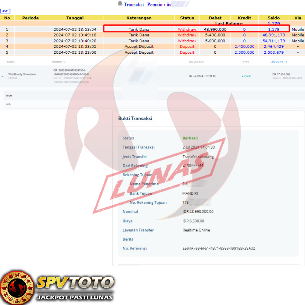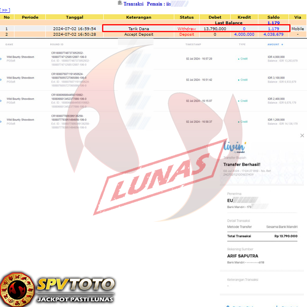 TRANSFER TELAH DI PROSES !! DAN MENDARAT MULUS KE REKENING ANDA YAH BOSSKU , WD BERAPAPUN DI SPVTOTO DI BAYAR LUNAS !! TANPA BASA BASI!!!