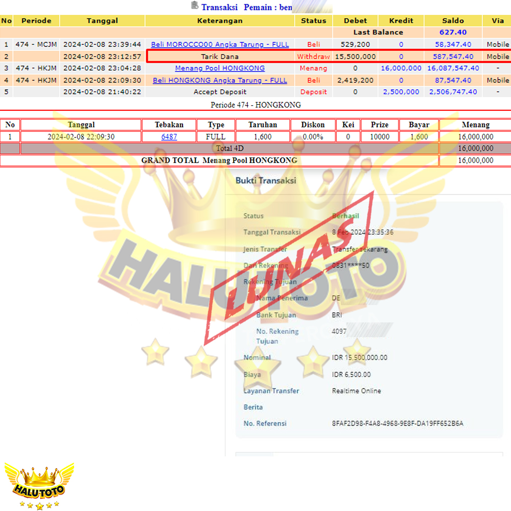MELAKUKAN PENARIKAN RP. 15.500.000 JT!!!!!!!!!